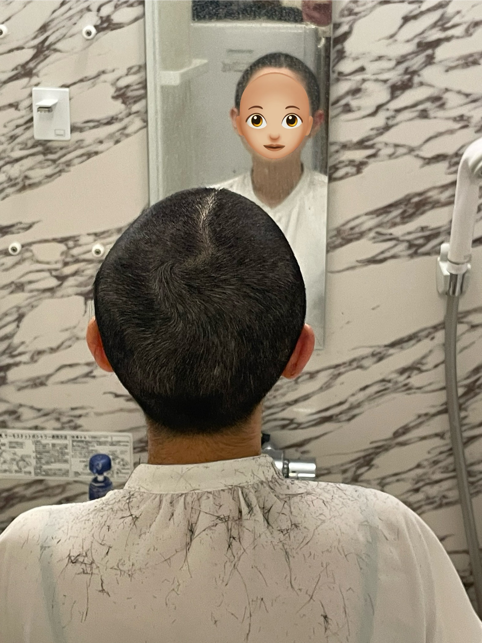 センターの分け目が坊主にしてもこんなにくっきり出てくるとは!