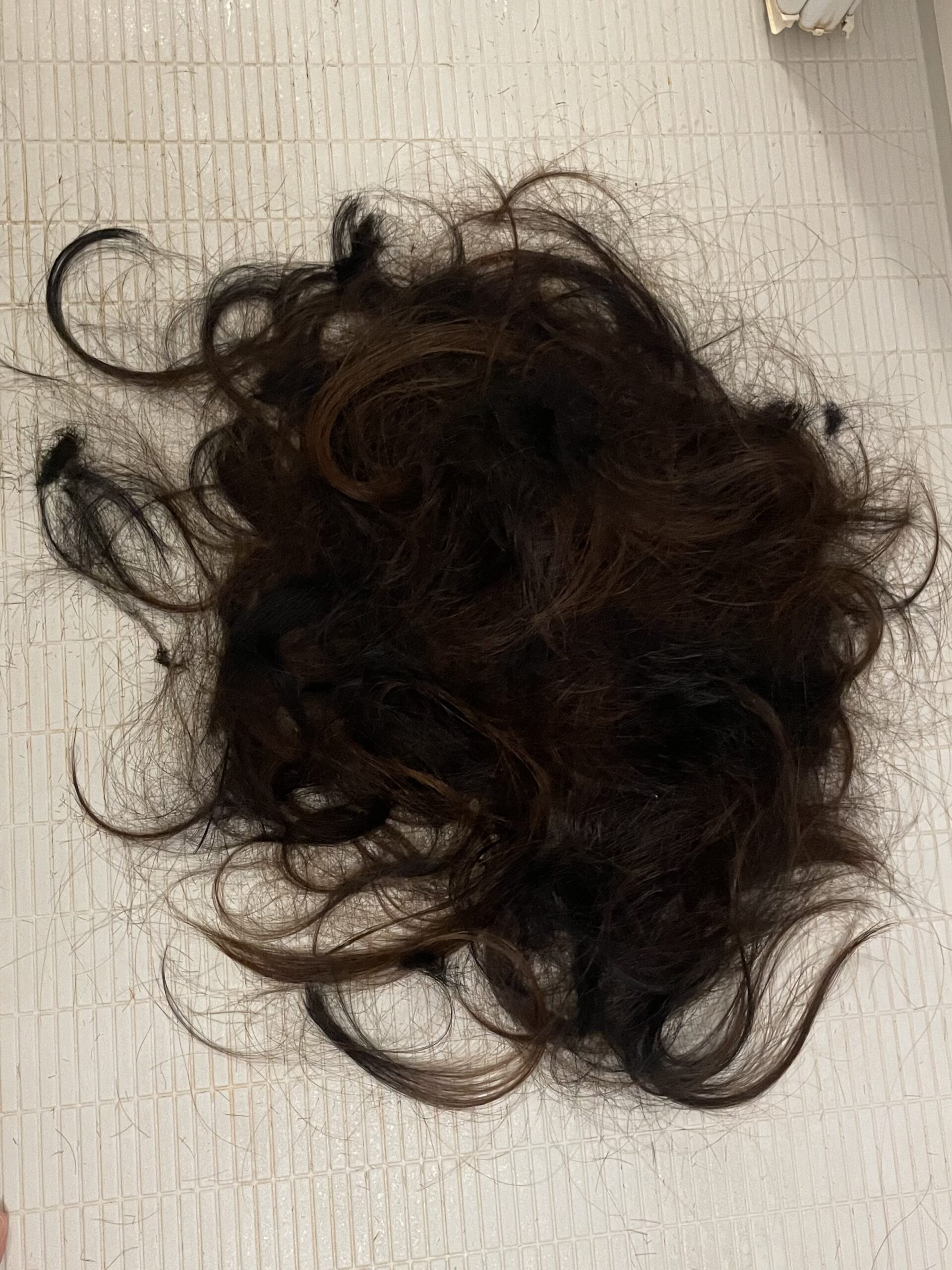 バリカンをいれる前はドキドキでしたが、いれてみると、どんどん床に落ちていく髪の毛が気持ちいいくらいです。ついに人生やりたいことリストが叶ったー!という思いです。