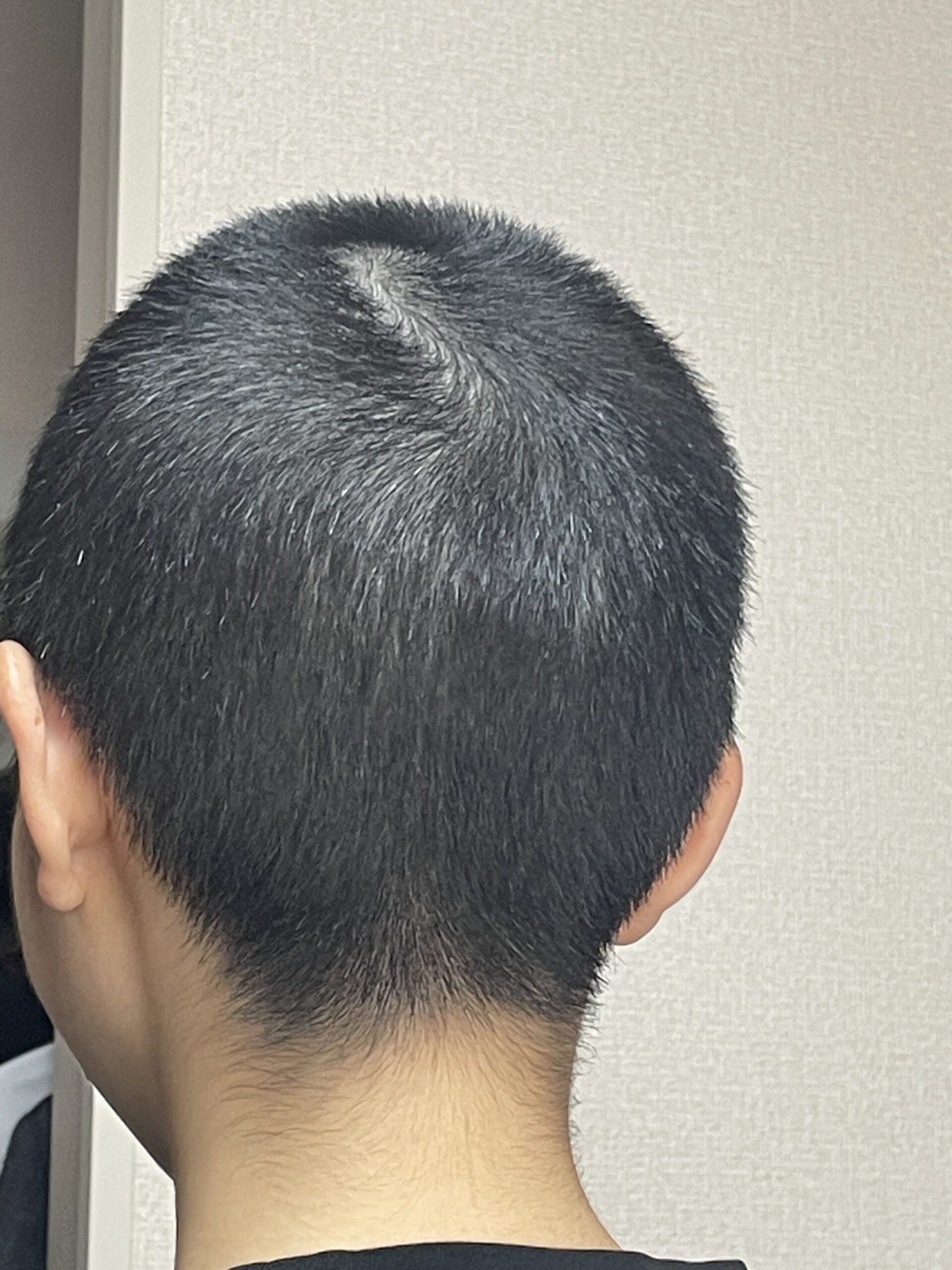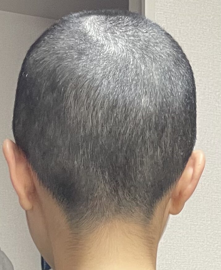 これは、2週間前(坊主にした直後)の写真(正面・背面)です。⇩