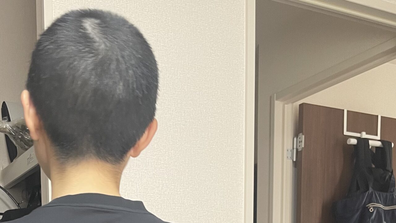 坊主にしてから2週間後の髪の毛の長さは、約1cmでした。